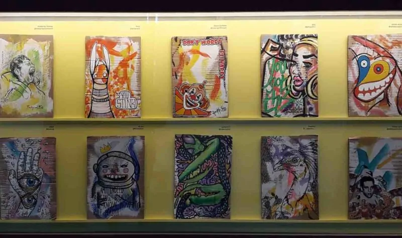 The exhibition is amazing and if you get a chance we highly recommend a visit. To see the diversity in styles and approach to the project is fascinating. From fine art, to collage and stencil art, each work of art is a masterpiece, but what we love most is that artists of all levels, skill and fame are all rubbing shoulders with each other.